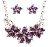 Vogue Gold Plated Crystal Purple Enamel Flower Bib Collar Necklace Earrings Jewelry Set Purple Jewelry